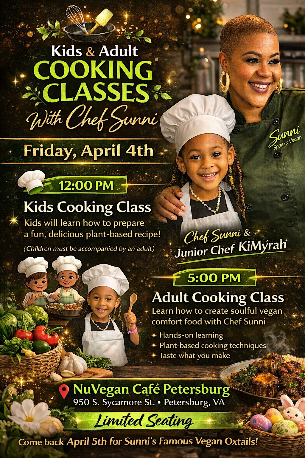 Kids Cooking Class with Sunni!Bring your little chefs for a fun, hands-on cooking class where kids will learn to make a simple vegan dish.