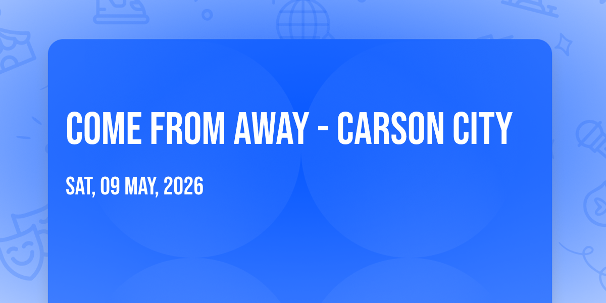 📍 Location: 39.1699, -119.76🌟 Step into a world of wonder at Come From Away - Carson City, where extraordinary moments await! 🏛️ Located at Carson City Community Center in dynamic Carson City, NV, this event will become the talk of the town. 📅 Join us on May 17th, 2026 at 09:00 PM for a celebration that defies the ordinary. ✨ This curated experience brings together the best of entertainment, culture, and community spirit. Every detail has been thoughtfully planned to ensure an unforgettable experience for all our guests. 🎯 Take advantage of this opportunity to be part of something special. 🎊 Early registration is recommended as space is limited!
