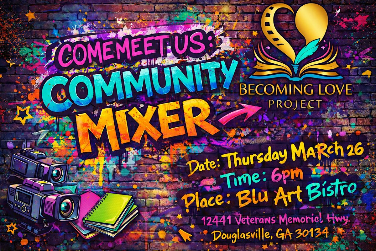 Becoming Love Project is a nonprofit that creates film and uses storytelling for change, and we’re getting ready for some exciting new projects and programs. Before all that drops, we want to meet our people at our Storytellers & Community Mixer at BluArt Bistro in Douglasville.