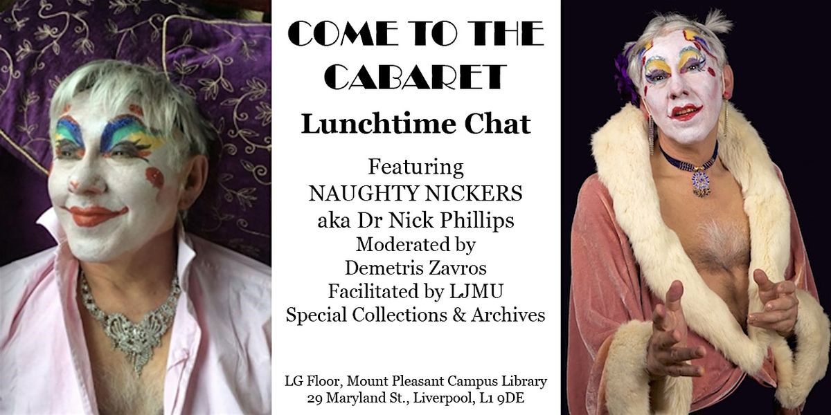 Interview with drag artist Naughty Nickers (Dr Nick Phillips), moderated by Demetris Zavros, and facilitated by LJMU Special Collections & Archives.