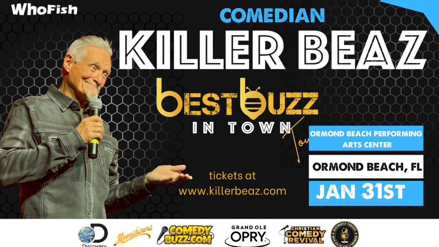 Celebrating the milestone of 10 seasons on Discovery Channel’s hit series, “Moonshiners”, comedian Killer Beaz is running the roads delivering his new “Best Buzz in Town” tour of outrageously funny and clean comedy. This legendary comedian continues to make regular performances at The Grand Ole Opry, and is headed, loaded down with laughs, to the Ormond Beach Performing Arts Center in Ormond Beach, Florida, Saturday, January 31st at 7:00 PM.