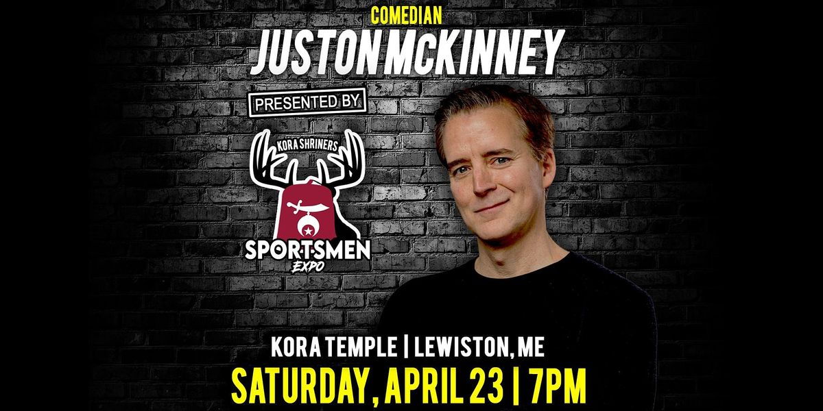 Brought to you by Kora Shriners Sportsmen Expo: Join us with Comedian Juston McKinney at the Kora Temple in Lewiston, Maine on April 23, 2022! There will be a ton of laughter and fun!