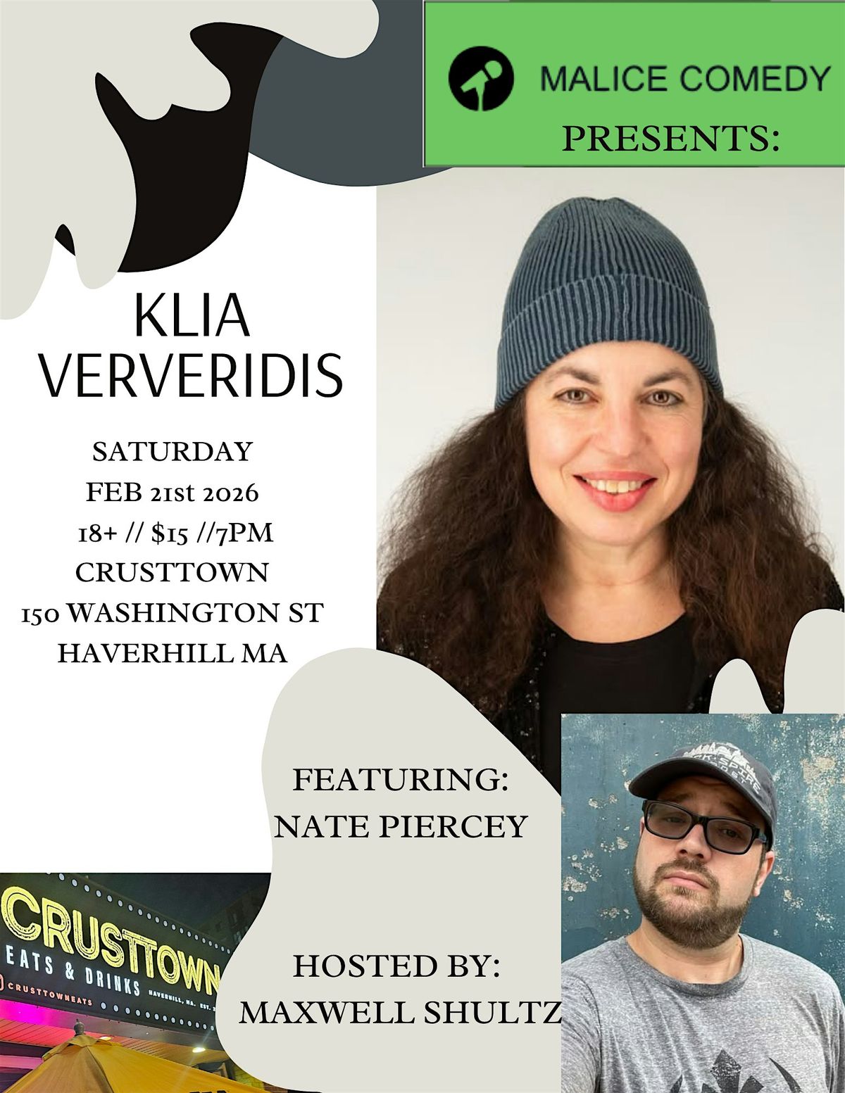 Klia Ververidis is a comedian that has appeared in venues across New England and New York City. Klia is also an actor and has appeared on stage in numerous comedies including the roles of Mrs. Peacock in Clue and Klionice in Lysistrata with the Neverland Theater Company. She has appeared on various television shows including Chronicle and The Playboy Channel’s Morning Show. Klia draws inspiration for her comedy from the 25 years she spent practicing law and as a show promoter for antique shows and events. FB & IG @kliaismad