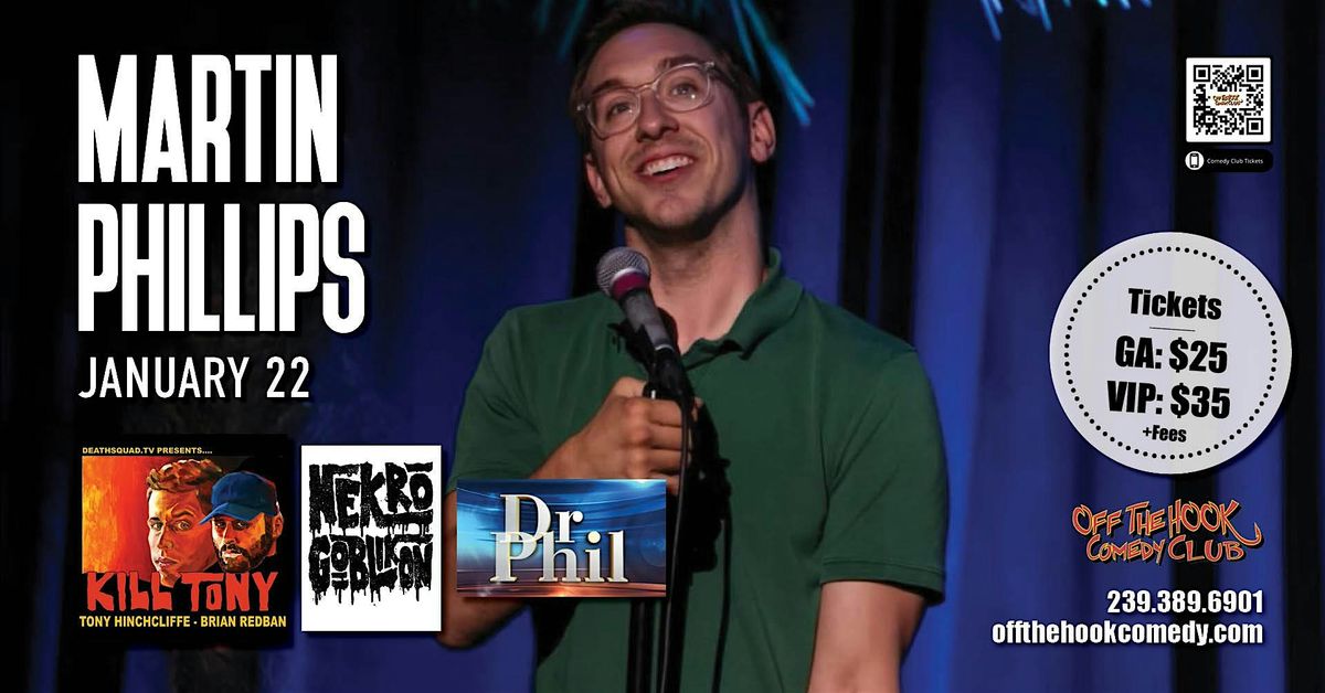 Martin Phillips is a stand-up comedian originally from Washington, D.C., now based in Austin, TX, who tours nationwide. He’s best known as a Golden Ticket winner on K*ll Tony, but has been featured on Nekrogoblikon, Dr. Phil Live with Adam Ray, and was recently seen on both of Netflix’s K*ll Tony specials—filmed in Austin and at Madison Square Garden.