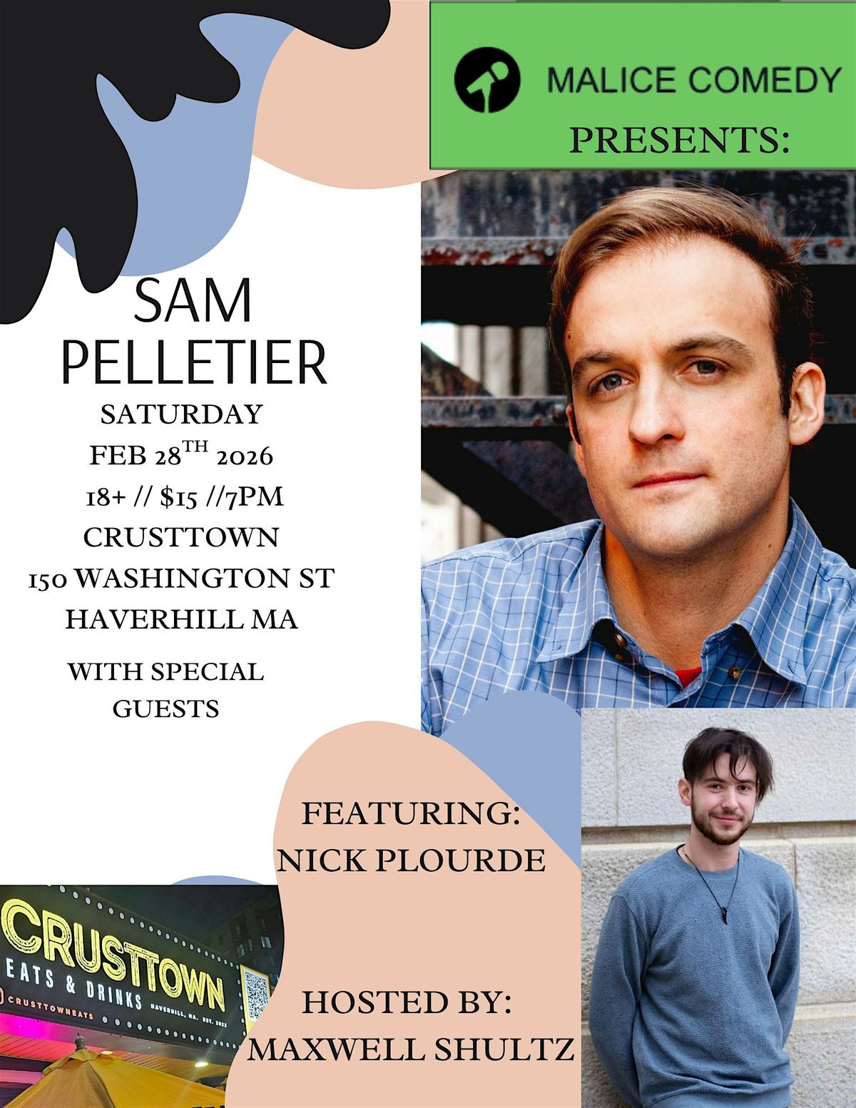 A headliner at Boston's Nick's Comedy Stop, Sam Pelletier has been bringing his unique blend of observation and relatability to audiences for more than a decade. Originally from the (somewhat) great state of Maine, Pelletier distinguished himself with impressive showings in contests around New England. He opened for national headliners including Lenny Clarke, Joe Bartnick, and Alex Edelman (cast member on NBC's The Paper). Pelletier has been featured in the Boston, Maine, and Rogue Island comedy festivals, and Mutiny Radio Comedy Festival in San Francisco. His hobbies include hiking and being a good listener.