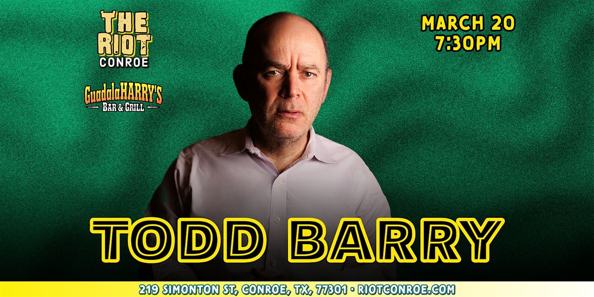 Catch Todd Barry live at The Riot Comedy Club upstairs at GuadalaHARRY's in downtown Conroe with tasty food, cold drinks, fun vibes!About this Event
