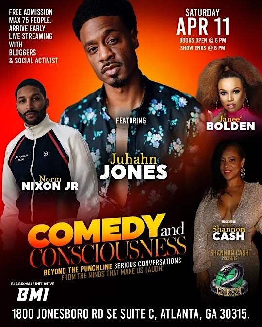 Comedy and Consciousness: Beyond the Punchline is a culturally driven experience that blends humor, insight, and impact. The evening begins with a dynamic panel featuring voices like Norm Nixon Jr., Janee’ Bolden, and Juhahn Jones, moderated by Shannon Cash, as they explore how comedy can be used as a tool to challenge narratives, spark dialogue, and move social and political conversations forward. Rooted in the experiences of Black creatives, activists, and culture shapers, this conversation sets the tone for a night that goes beyond entertainment. Following the panel, the energy shifts into a live comedy show, where laughter meets truth and the stage becomes a space for both release and reflection. This is more than a show—it’s a gathering at the intersection of culture, comedy, and consciousness.