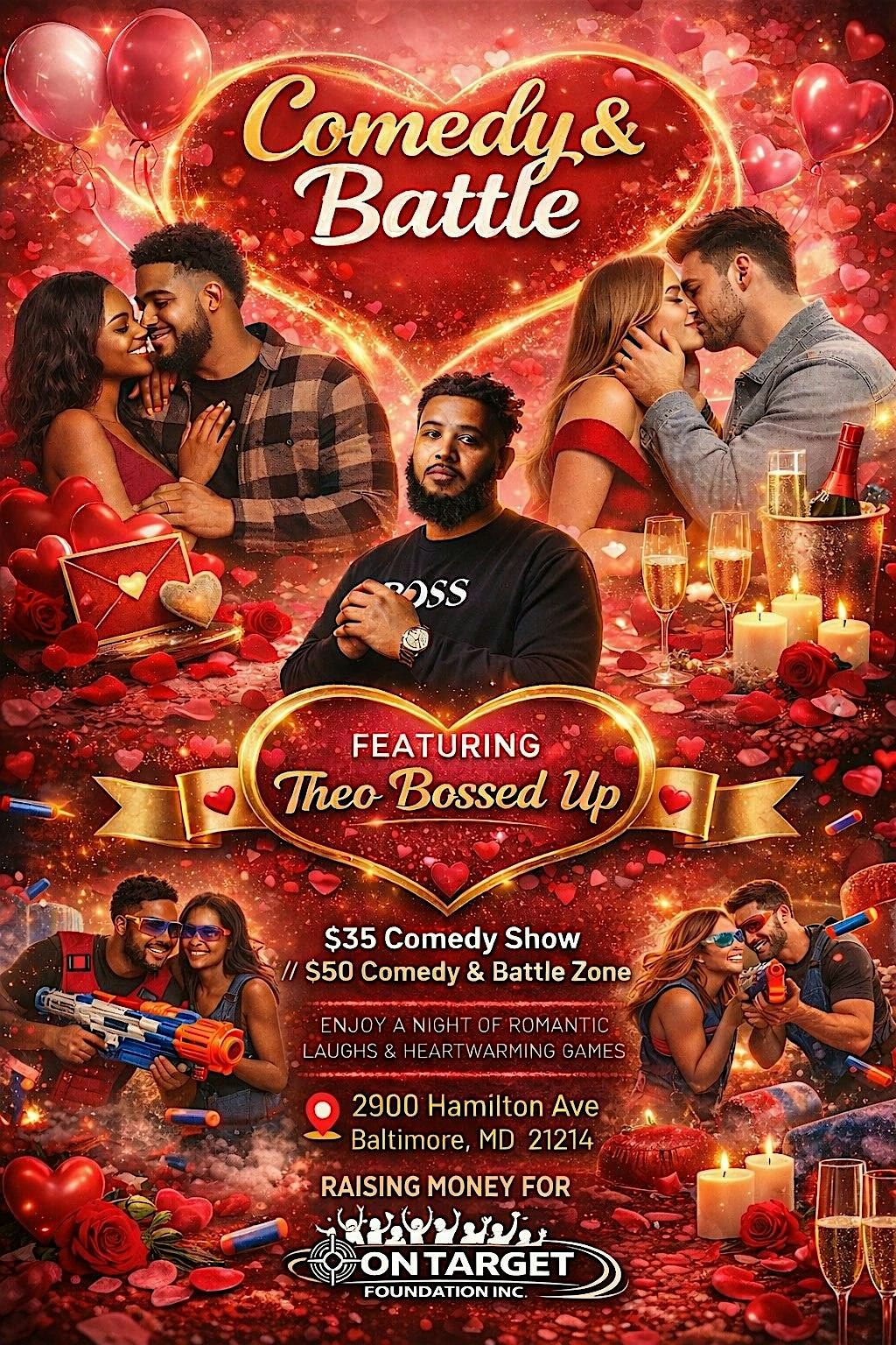 Romantic Valentine’s night out! Live comedy featuring Theo Bossed Up plus couples Battle Zone games at 2900 Hamilton Ave, Baltimore.About this Event