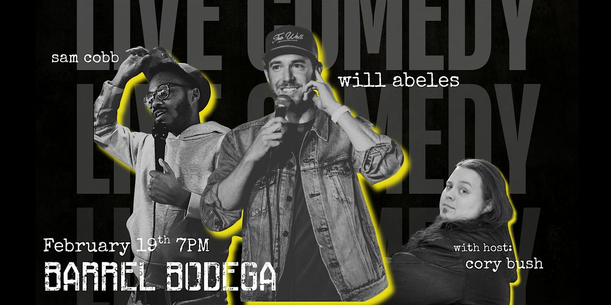 Join us Thursday, February 19th at 7 PM for a special night of live comedy. Featuring Hagerstown’s own Will Abeles as he's joined by Sam Cobb and host, Cory Bush.