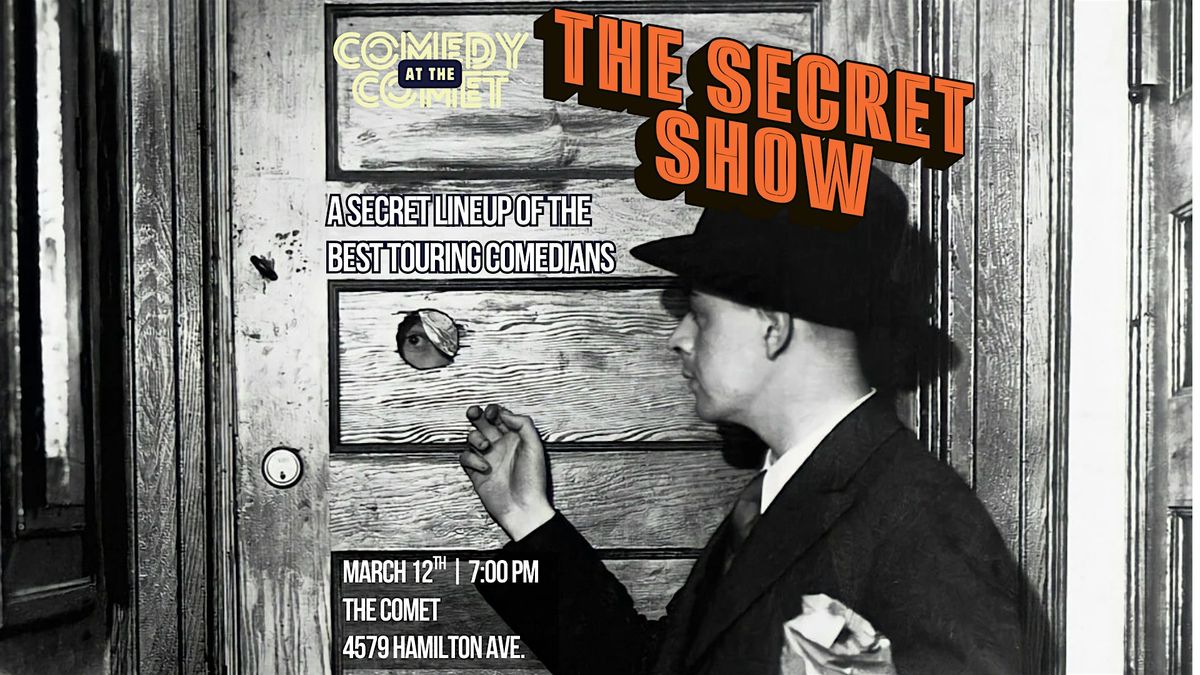 The Comet Presents The Secret Show; a Live stand-up comedy show featuring some of the best comedians working today. Comedians so good we can’t tell you who they are. Each month we bring 3-5 of the funniest comics we can get to The Comet for a show. Comedians you will see at this show have been featured on Comedy Central, Conan, Family Guy, CMT, and Netflix. Whether they are a rising star or the biggest stars, you never know who you’re going to see at our Secret Show.