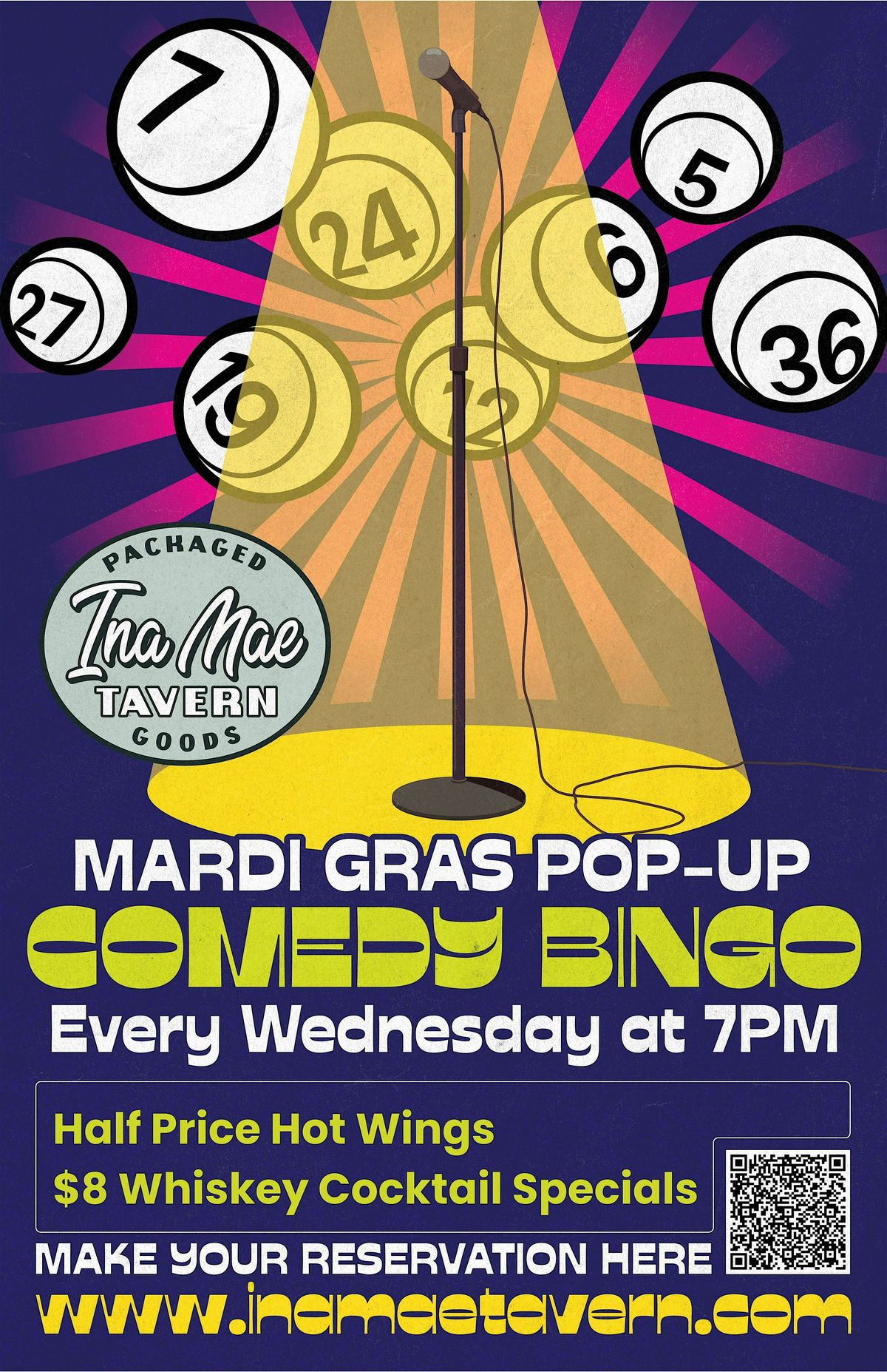 Join us every Wednesday at Ina Mae Tavern for Free Comedy Bingo at 7:00PM! Fun prizes awarded weekly!