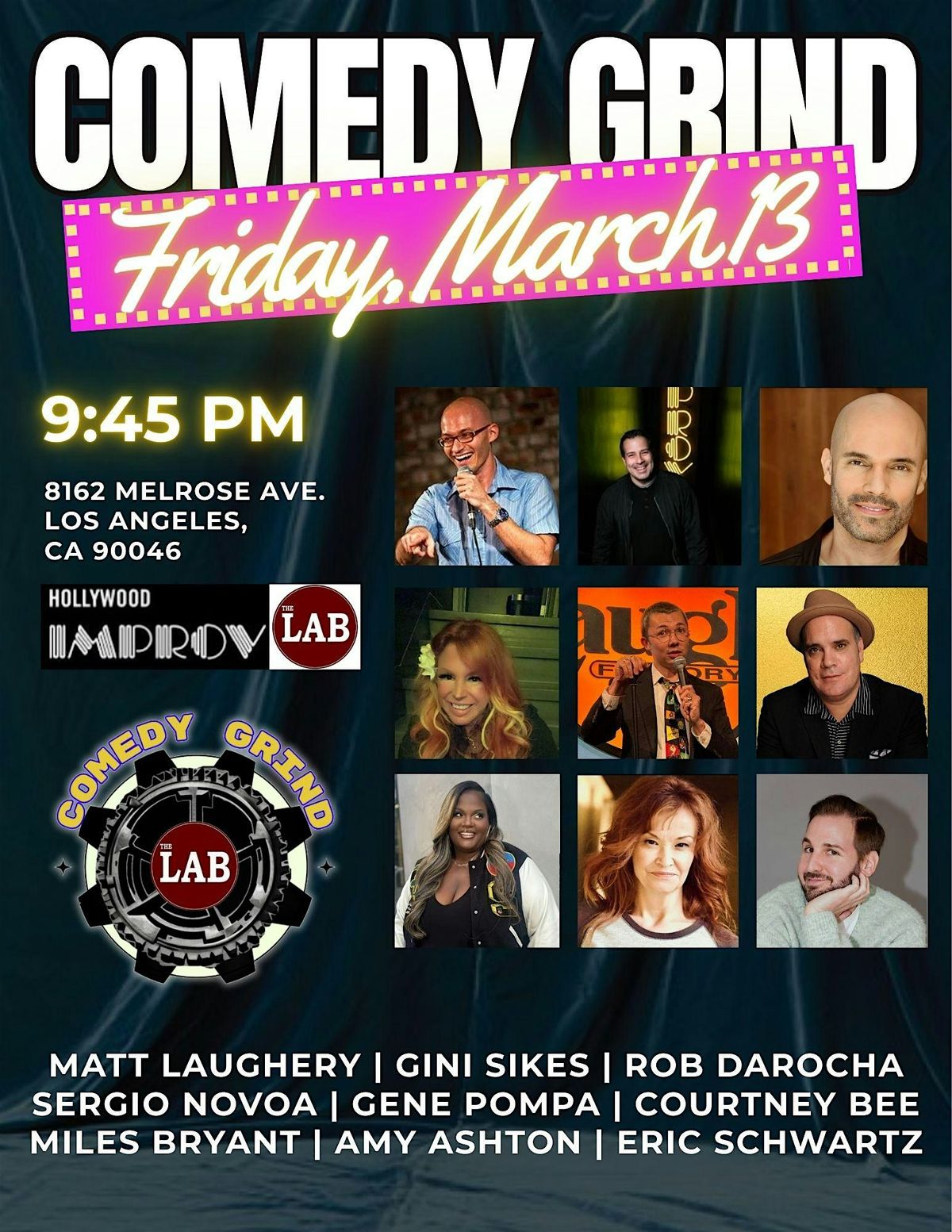 A stacked lineup of up-and-coming comics and veterans with Comedy Central and late night TV credits — sharing the same stage, same mic, same pressure.