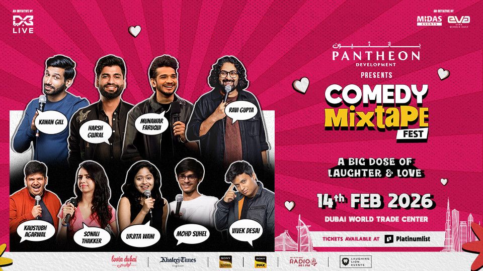 - Midas Events, Eva Live Middle East, in partnership with DXB Live, are bringing back an extravaganza of laugher with Comedy Mixtape Vol. 2! Set to take centre stage at Dubai World Trade Centre on 14th February 2026, the showcase promises a full-blown laughter carnival bringing together South Asia's most electrifying comic talents under one roof.