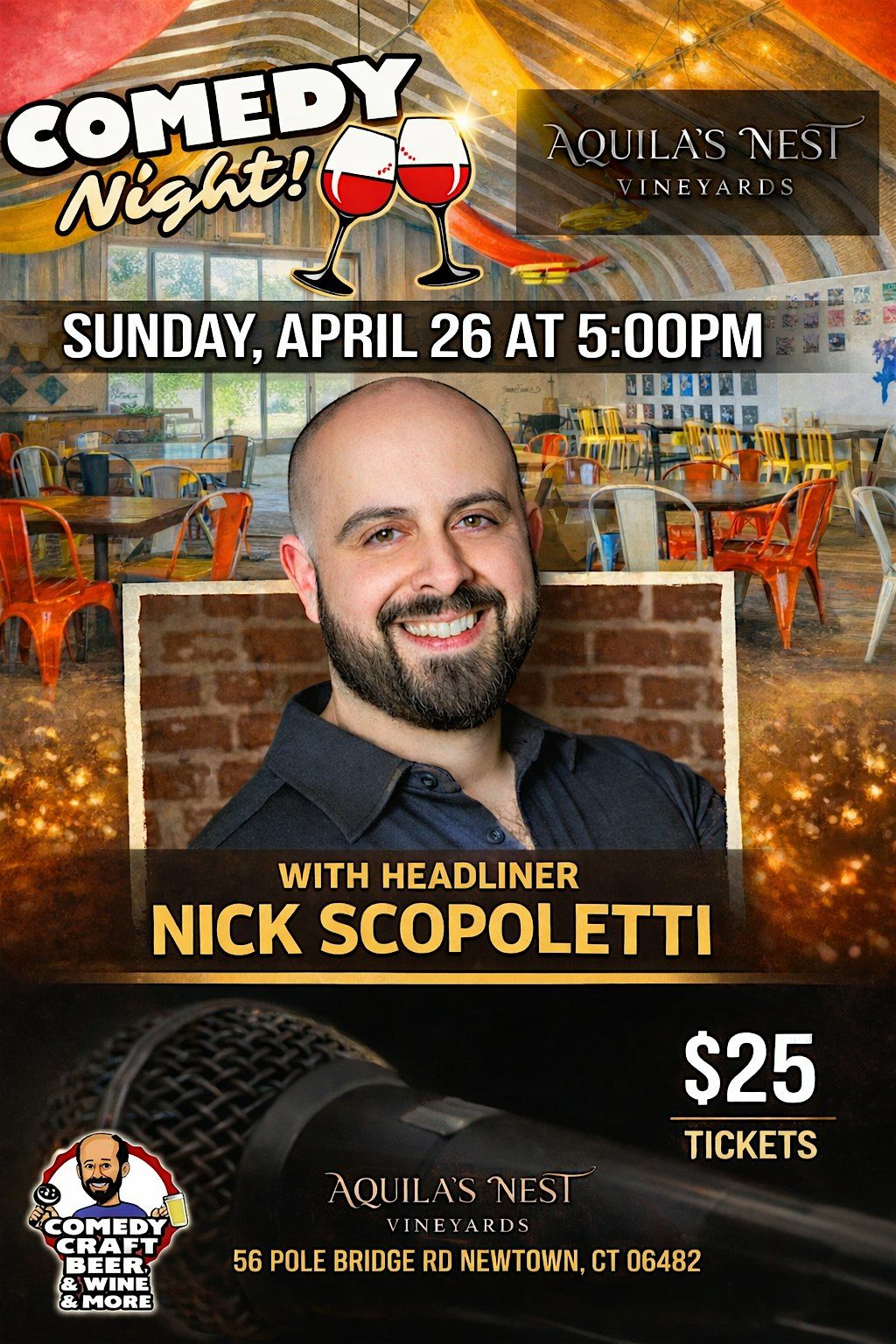Laugh out loud with friends over great wine at Comedy Night at Aquila’s Nest Vineyard—fun guaranteed!About this Event