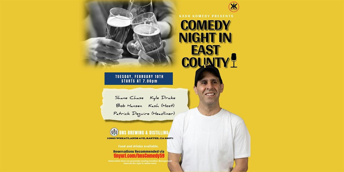 Who's ready to come out to Santee and enjoy a comedy show and have a good laugh. The next comedy show is planned for Tuesday February 10th at 7.00pm at BNS Brewing & Distilling Co. in Santee. I hope you can make it. The show will start at 7.00 pm but I would recommend getting there early since seating is on a first come first serve basis. We have the hilarious Patrick Deguire headlining this show, so you don't want to miss this one.