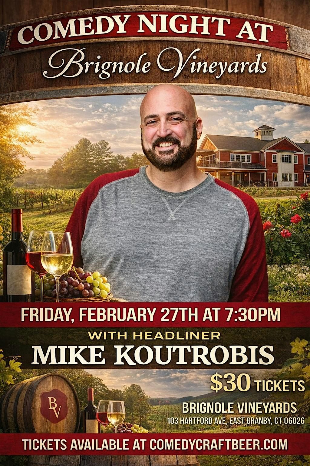 Laugh out loud with great wine and hilarious acts at Comedy Night at Brignole Vineyards!About this Event