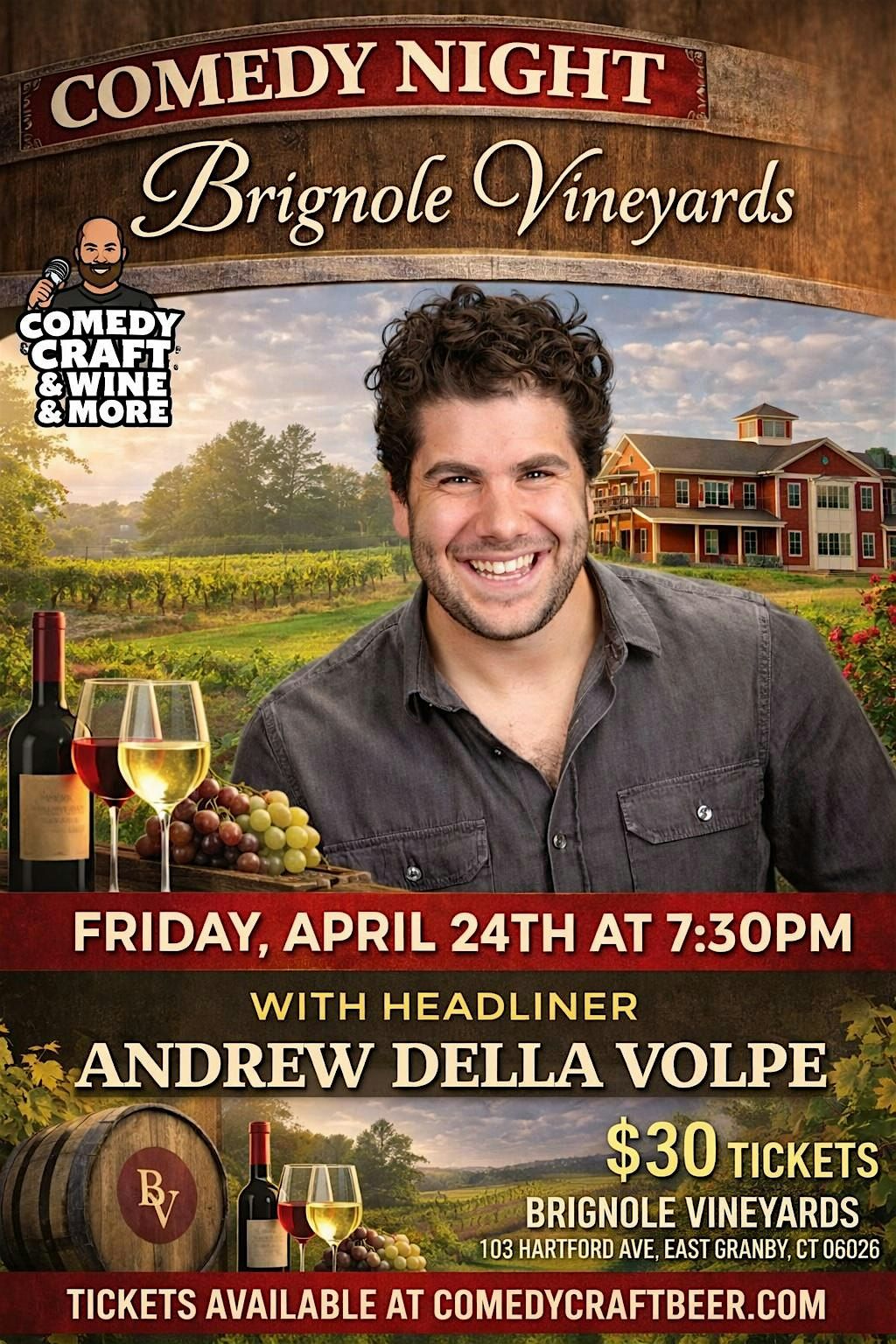Join us for laughs and wine at Comedy Night at Brignole Vineyards—good vibes and great jokes await!About this Event