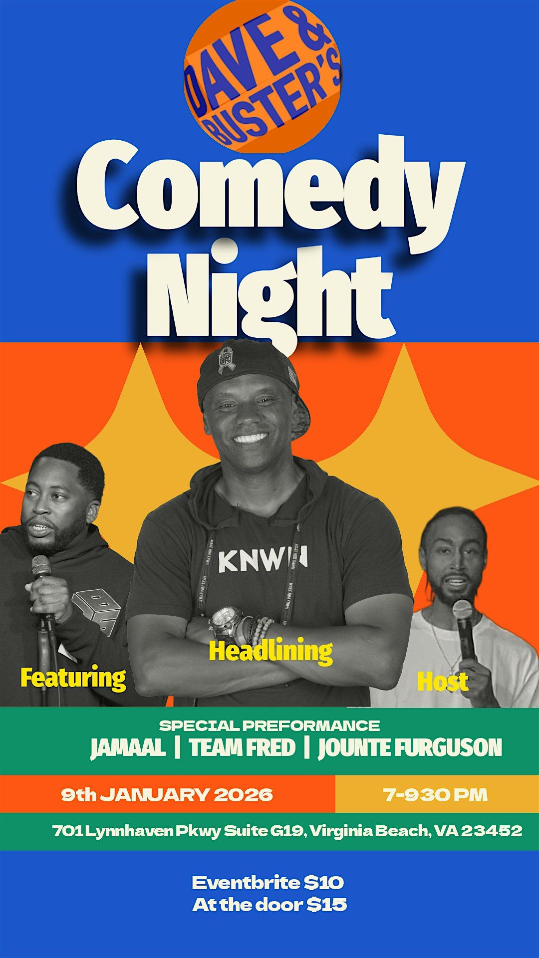 Join us for a night of laughs and great energy at Dave & Buster’s! This comedy showcase brings together a strong lineup of comedians for an evening full of humor, fun, and entertainment.