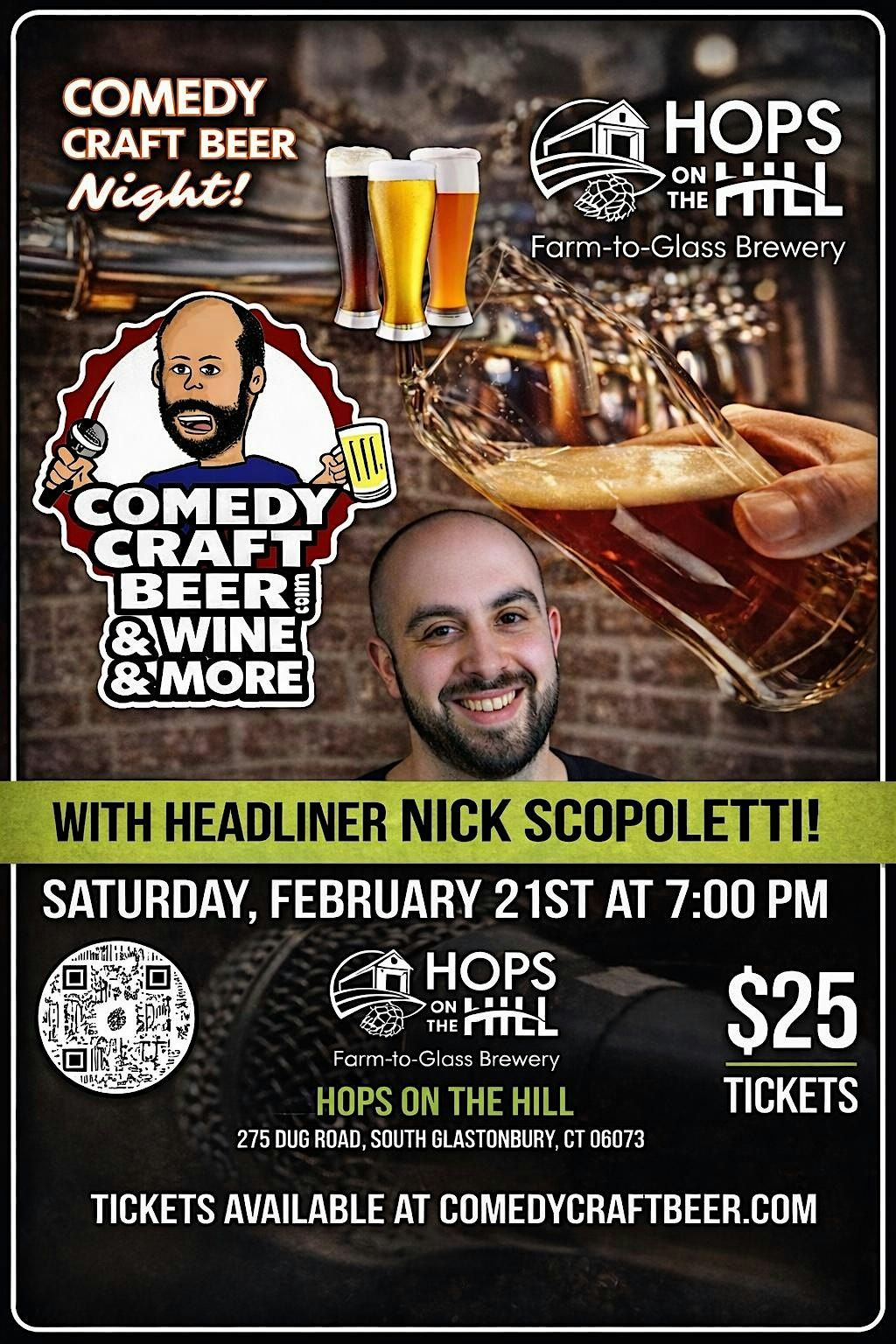 Get ready for a night full of laughs at Hops on The Hill! Join us for an in-person comedy show where some of the funniest local comedians will take the stage. Bring your friends, grab a drink, and enjoy a relaxed vibe filled with good humor and great company. It’s the perfect way to unwind and have some fun. Don't miss out on the Comedy Night that everyone will be talking about!