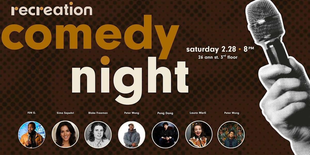 Comedy Night is back at Recreation — bringing fresh jokes, strong drinks, and a crowd ready to laugh. Kick off your Saturday with live stand-up from a stacked lineup of comedians in a lounge built for good vibes. Food and drinks will be available for purchase throughout the night, so grab a cocktail, settle in, and let the night play out.