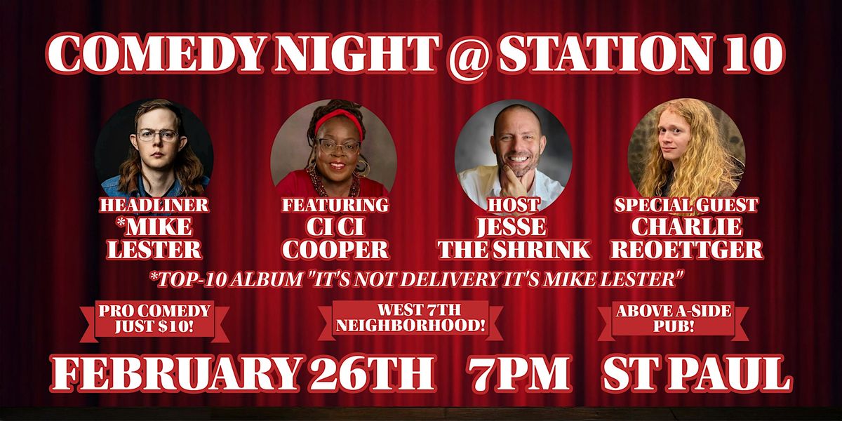 Following our sold out New Year's Eve show, Comedy Night at returns with our funniest lineup yet! Headliner Mike Lester (Top-10 album "It's Not Delivery It's Mike Lester"; City Pages "Artist of the Year"; Amazon Prime's "Coming to the Stage"), comedy veteran Ci Ci Cooper (2025 Funniest Headliner Contest finalist at Gambit Brewing in St Paul), host Jesse The Shrink (St Paul Comedy All-Stars Show), & special guest Charlie Roettger (winner, 2025 Acme Comedy Company Funniest Person Contest).