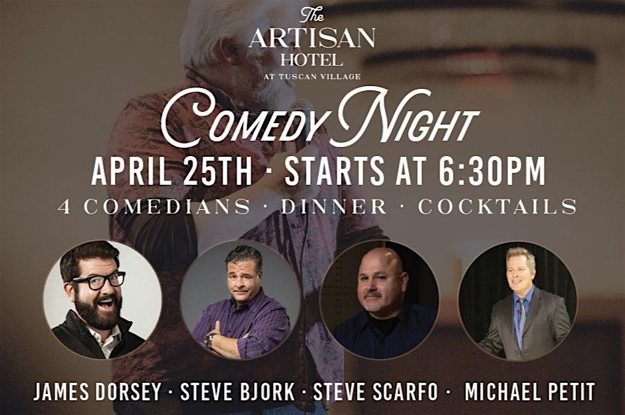 Get ready for a night of great food, drinks, and nonstop laughs at Comedy Night in the Ballroom at The Artisan Hotel.