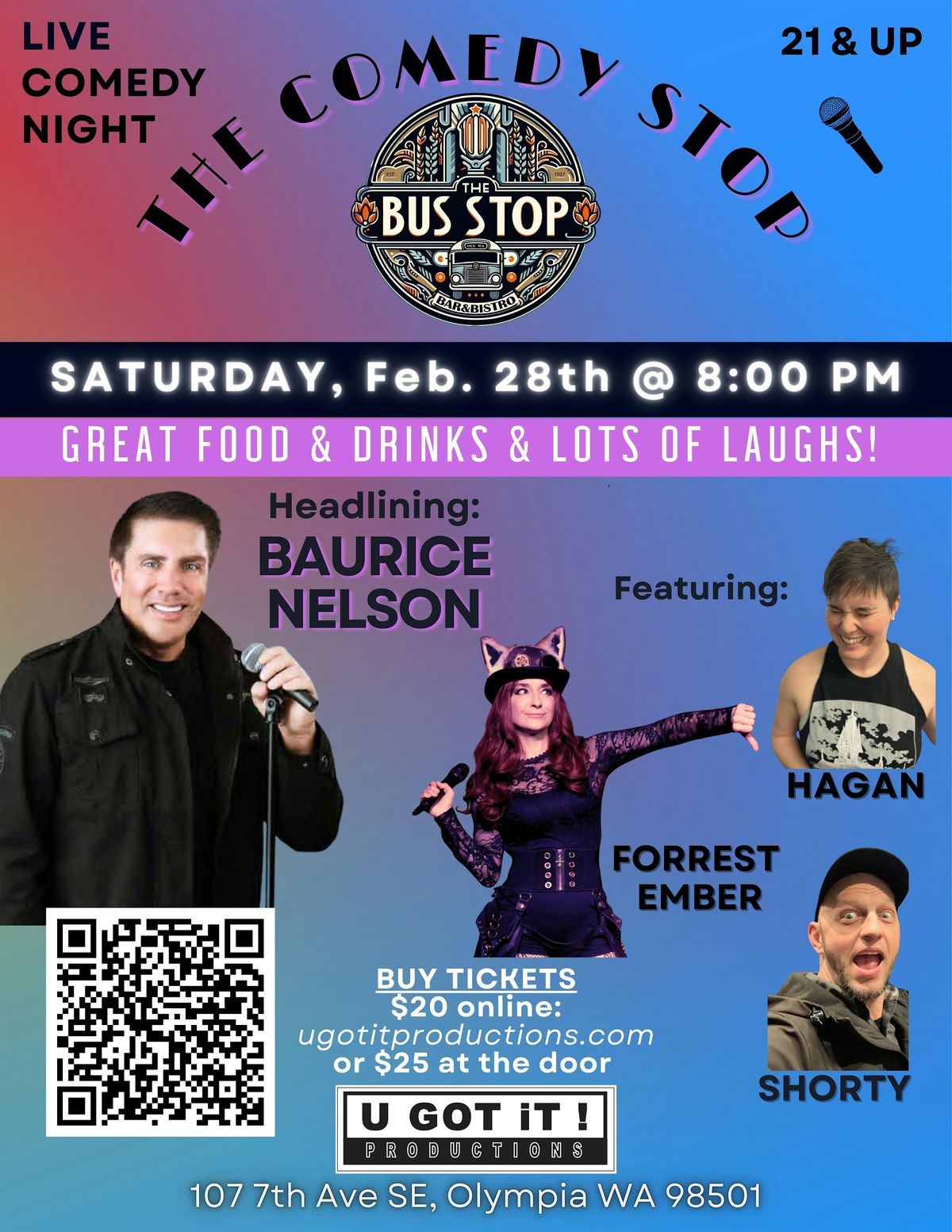 Food and drinks are available for purchase upon arrival or as order ahead. Recommend arriving at least 30min ahead of time to find parking, checkin, and find a table. Show starts promptly at 8pm.