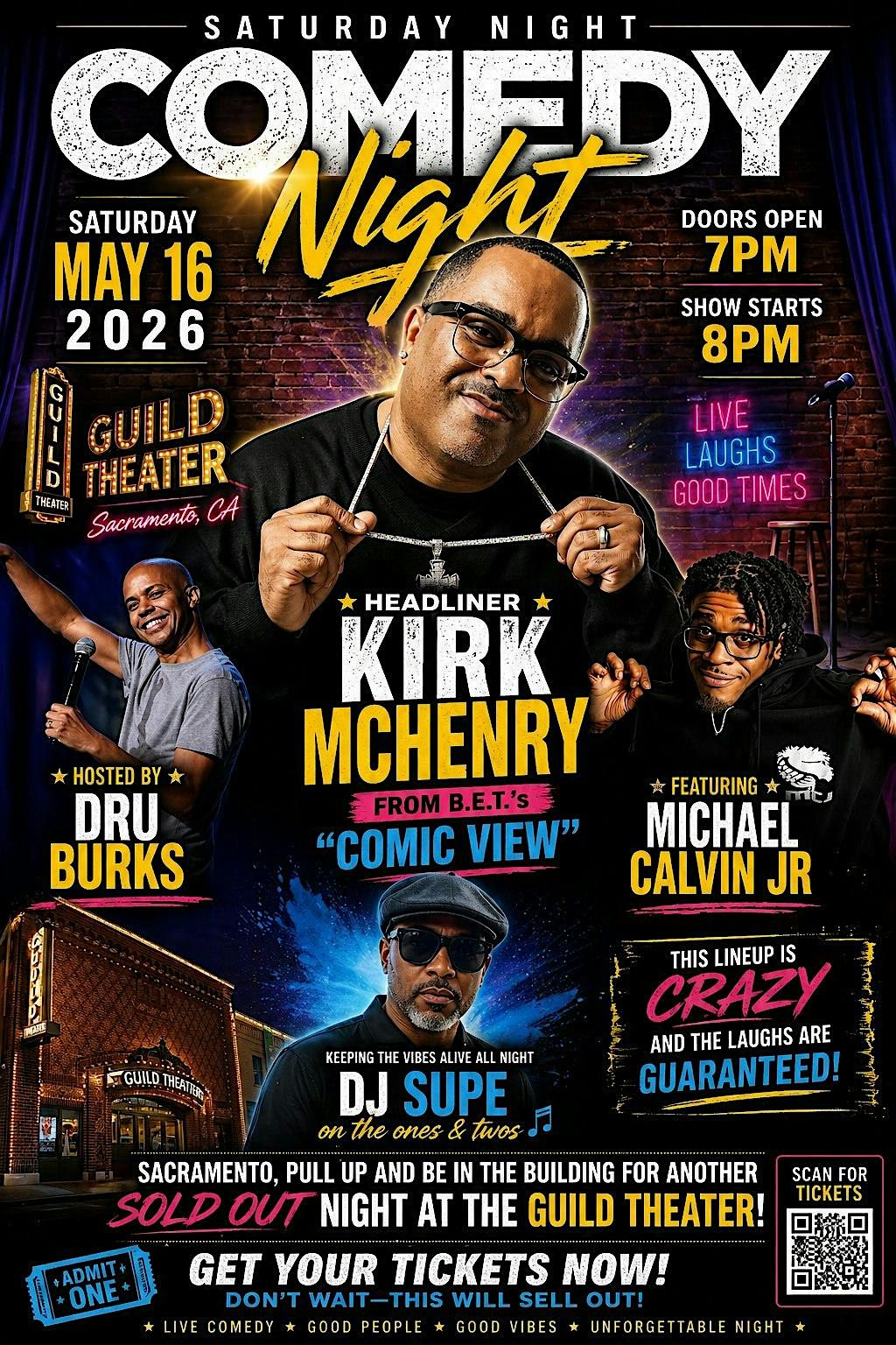 Kirk McHenry is a veteran stand-up comedian and actor from Oakland, California, known for his story telling style that blends inner-city life with his experiences in the Marine Corps and prep school. He has been performing for over 30 years and is frequently described as having a comedic voice similar to Bill Cosby with a "Richard Pryor twist"