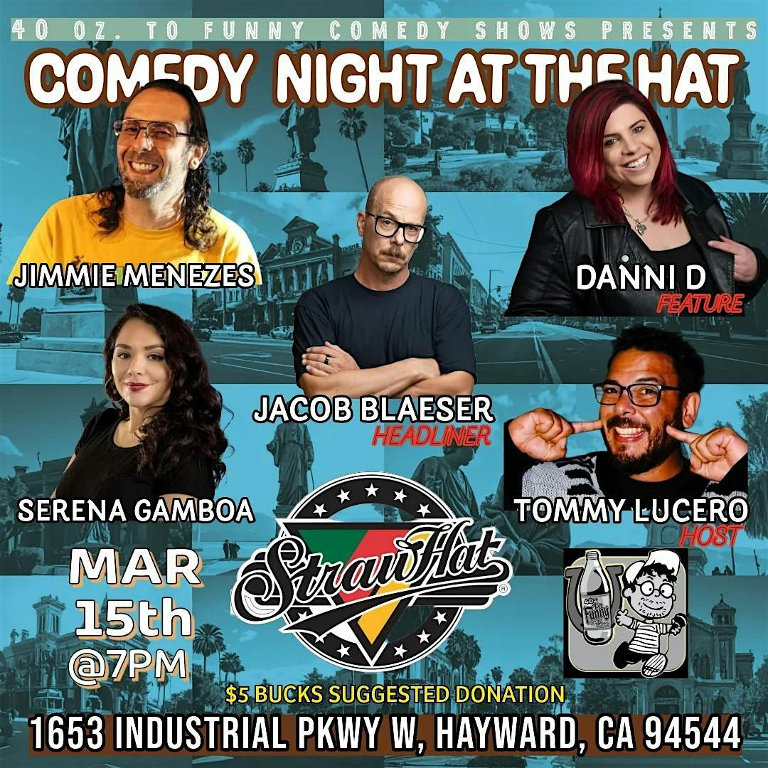 40 oz to Funny comes to Hayward!! Host and Producer Tommy Lucero brings a line up of comedy that has performed at Punchline, Laughs , The Comedy Store in Hollywood as well as LA Jolla PLUS 2 MAMA Award recipients. Serena Gamboa, "The Spicy Latina", Jimmie Menezes, Jacob Blaeser, and the hilarious Danni D are all guaranteed to keep the crowd laughing . $5 entry, food / drink specials, and a fun night all the way around.