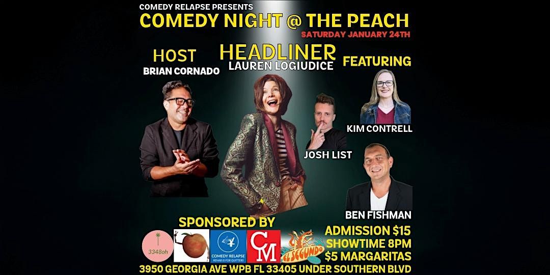 Lauren and other comics from New York have headlined the peach Including Noah Snyder Zach Mcgovern and Sara Armour. Host Brian Coronado is a local Favorite and has also headlined the Peach. Features Jost List and Jess Laso and regulars in the South Florida Comedy Circuit. Ben Fishman Is the Producer of the show and manager of all things comedy for the peach and the Sub Culture Group. We are looking forward to having you join us for a beautiful eveing of laughter.