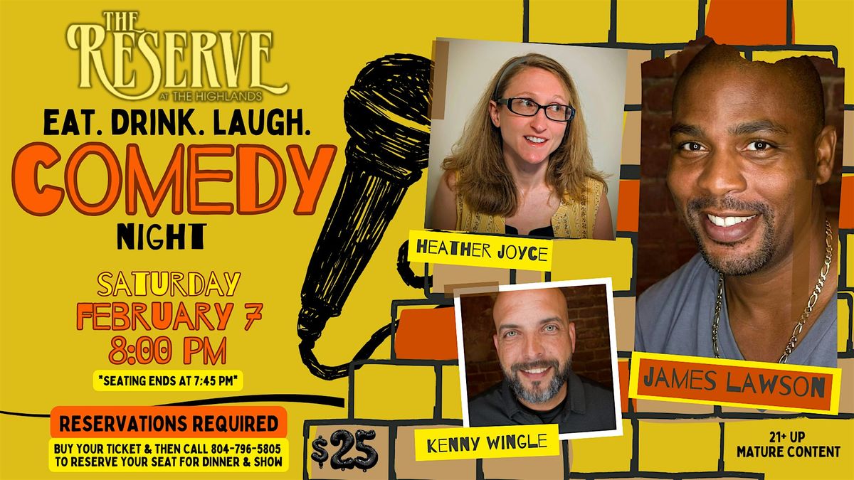 Get ready for a night of big laughs, great food, and cocktails flowing at The Reserve at The Highlands! Join us on Saturday, February 7th for an unforgettable Comedy Night featuring three hilarious professional comedians:
