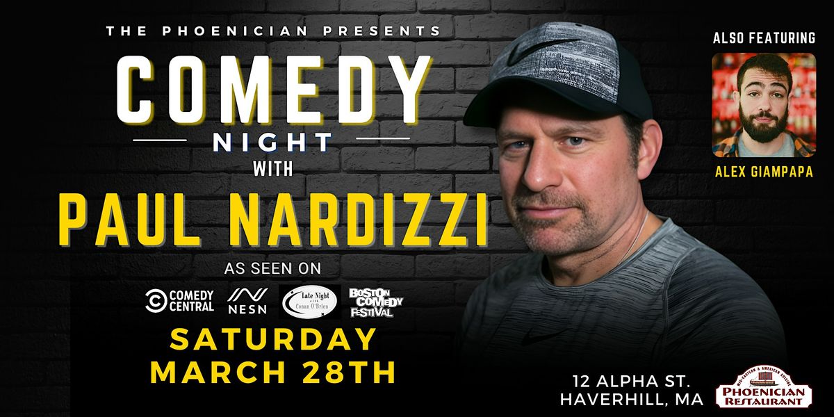 Join us at The Phoenician in Haverhill, MA on Saturday, March 28th for a night of nonstop laughs in our event hall, headlined by the hilarious Paul Nardizzi!