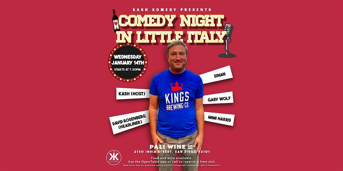 Do you like Wine and Comedy? Then come out to Little Italy for a night of laughter at Pali Wine Co. where you can enjoy some great tasting wine and some good laughs. There is a different lineup every week so you can enjoy a new comedy experience with each show. The show is produced and hosted by Kash Komedy and features some of San Diego and LA's funniest comics.