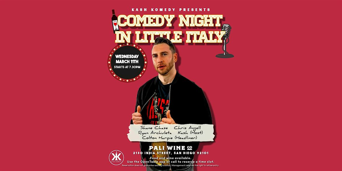Do you like Wine and Comedy? Then come out to Little Italy for a night of laughter at Pali Wine Co. where you can enjoy some great tasting wine and some good laughs. There is a different lineup every week so you can enjoy a new comedy experience with each show. The show is produced and hosted by Kash Komedy and features some of San Diego and LA's funniest comics.