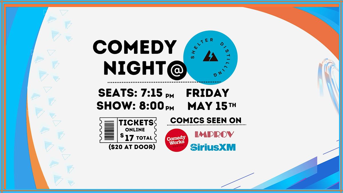 Comedy Night in Montrose at Shelter Distilling Friday May 15th, Show Starts at 8pm, but get there for Dinner, Drinks, and Good Seats!