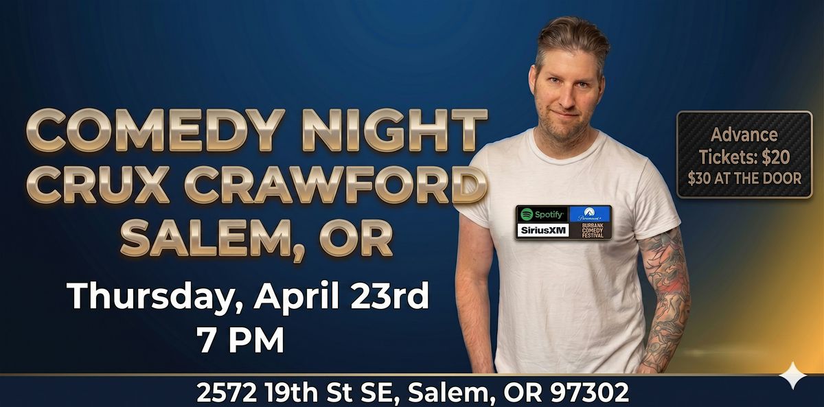 Crux Crawford is a nationally touring comedian with roots in Los Angeles. Known for his sharp, relatable humor, Crux's material draws from his experiences as a father, an aging millennial, and the balancing act of managing family life while traveling the stand-up comedy circuit. With millions of views on platforms like TikTok and YouTube, Crux has quickly become a rising star in the comedy world. He's shared the stage with comedy icons like Russell Peters, Pablo Francisco, Josh Blue, and Pauly Shore, among others.