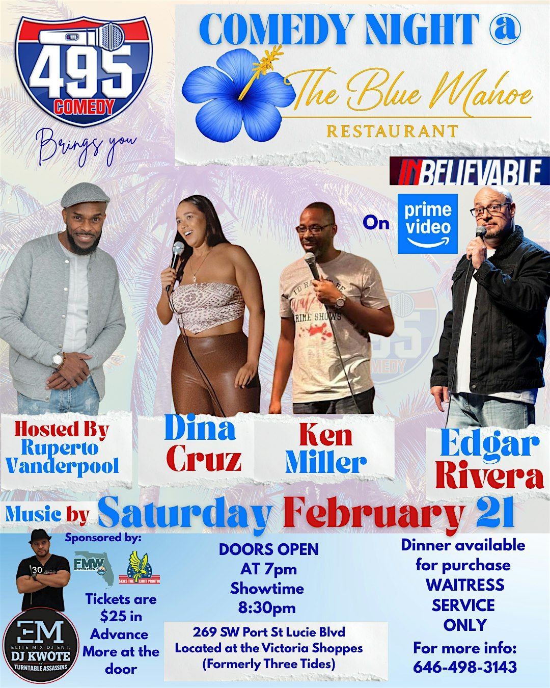 Get ready for a night of unbelievable laughs, great food, and nonstop entertainment as 495 Comedy brings another high-energy comedy showcase to The Blue Mahoe Restaurant in Port St. Lucie.