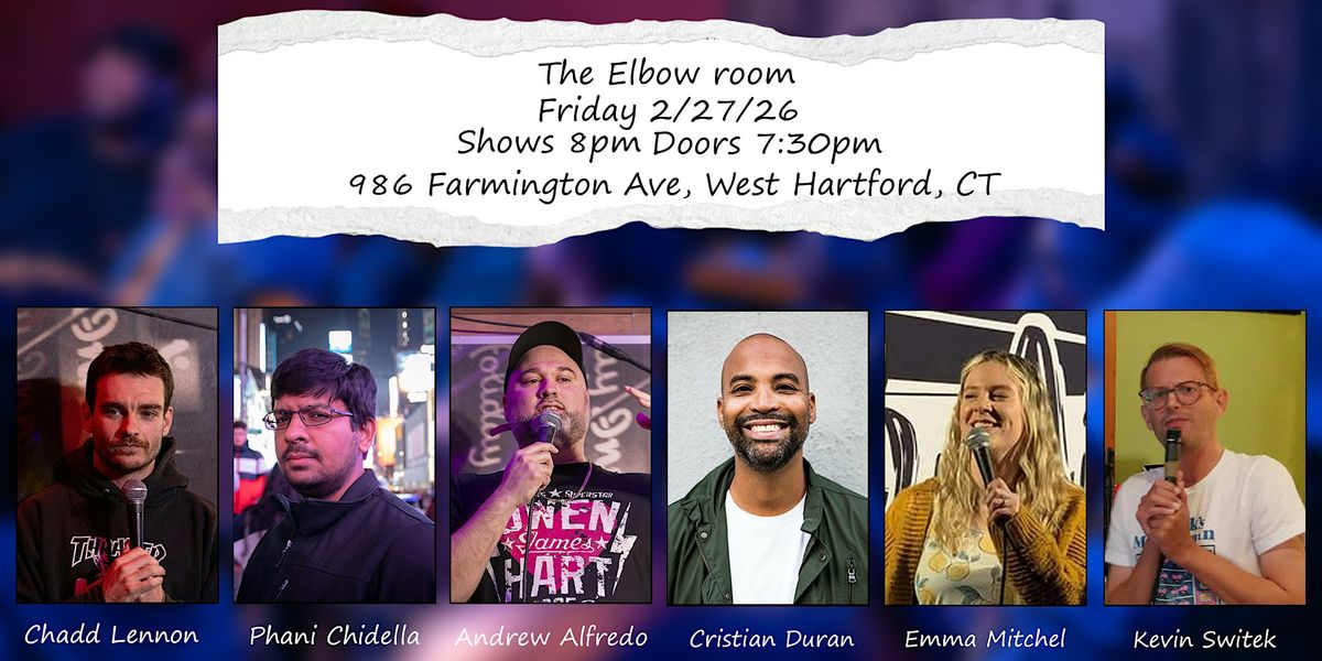 Your host, Chadd Lennon, is a New England–based comic and a regular at the Elbow Room in West Hartford. His comedy is rooted in sharp observations, honest takes, and the occasional well-earned roast. Chadd has performed with Don’t Tell Comedy, Roast Battle League Hartford, and the Funny Bone Comedy Club.