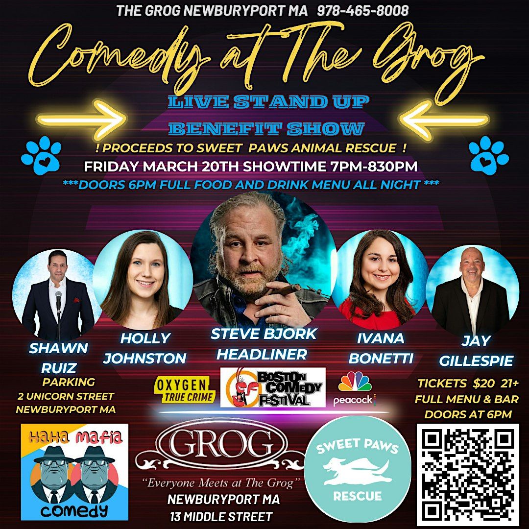 Join us for laughs & pawsome vibes at Comedy Night @ The Grog on March 20th—support Sweet Paws Rescue!About this Event