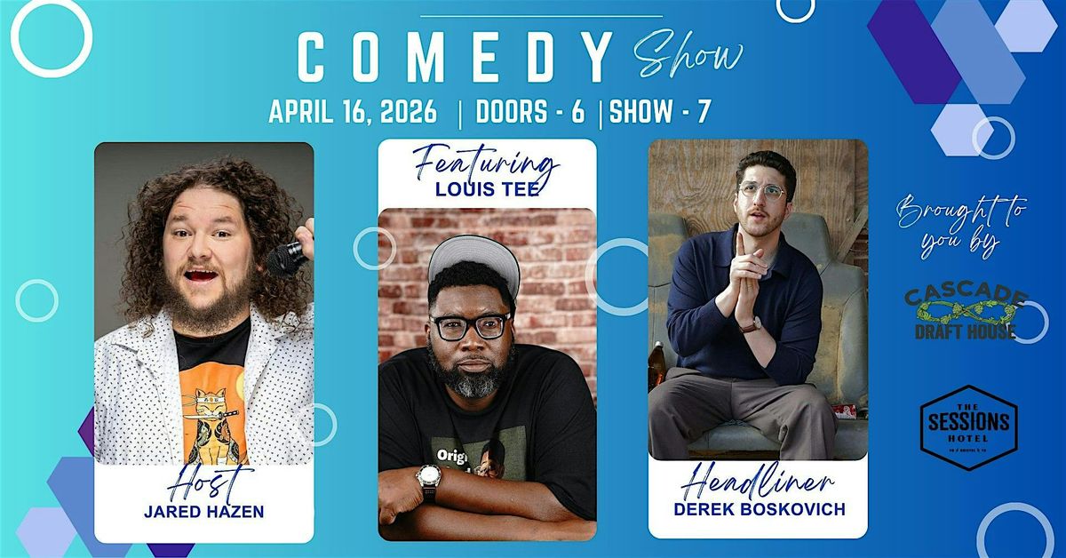 Derek Boskovich headlines with Louis Tee and host Jared Hazen—your ticket includes two draft beverages for a night of big laughs.About this Event