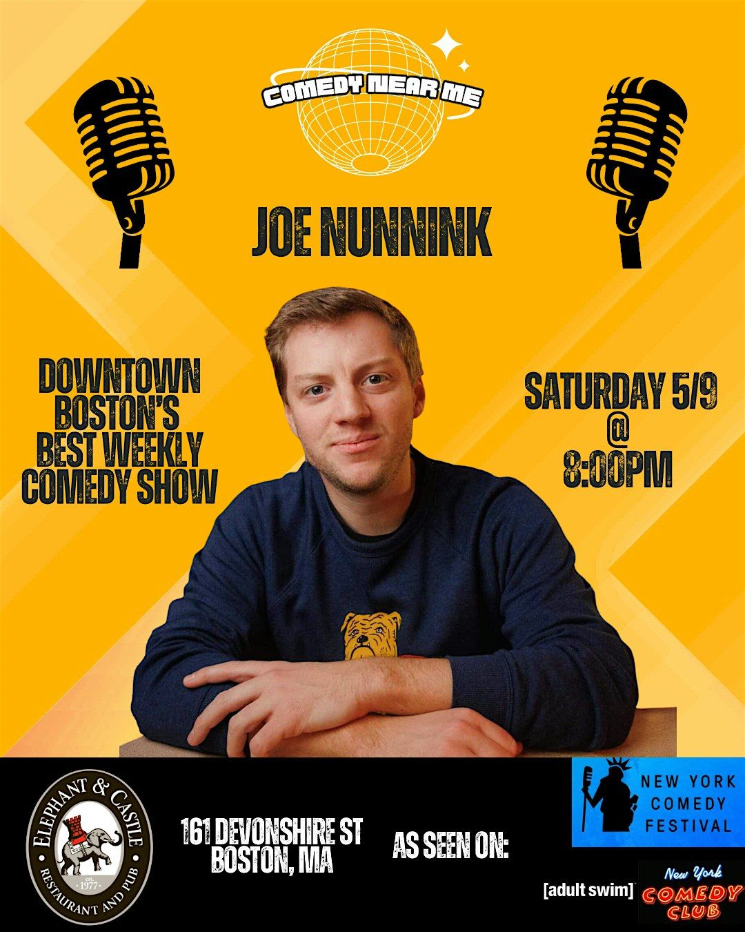 Boston’s Best Weekly Comedy Show takes over Elephant & Castle in Downtown Boston every Saturday, featuring the best up and coming nationally touring headliners. Catch top stand-up comedians seen on Netflix, Comedy Central, HBO, Tik Tok, & More —live comedy in Boston every week.