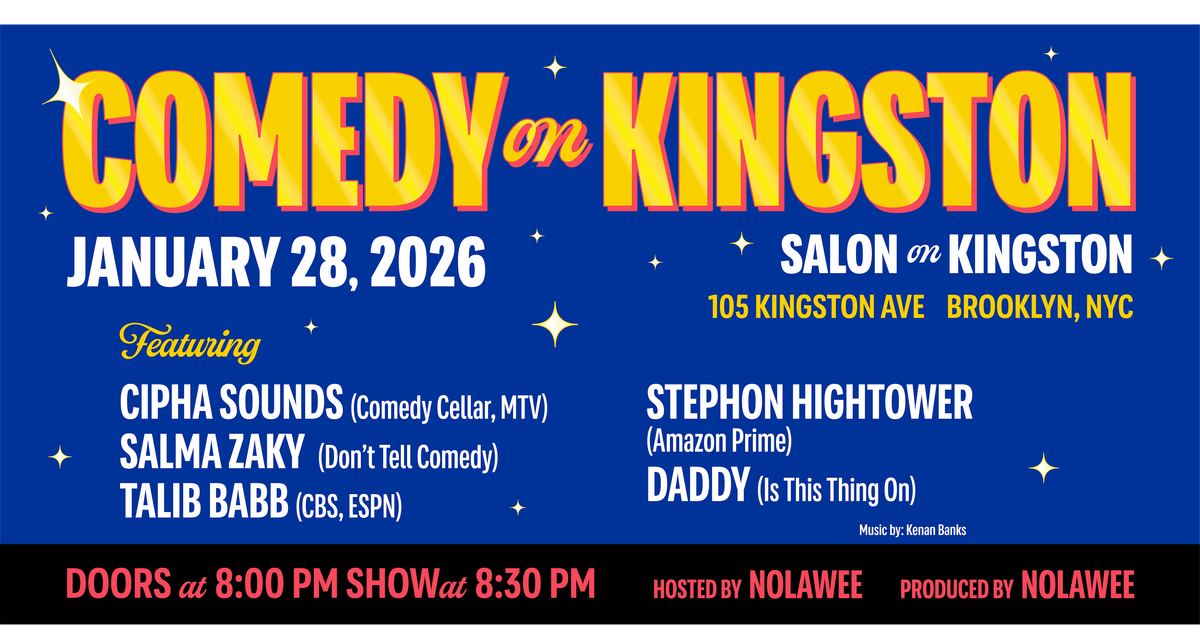 ๐ Get ready to laugh your way through the night at our first Comedy on Kingston stand-up show of 2026! Join us on JANUARY 28th, at the unique and vibrant Salon on Kingston, nestled within the charming neighborhood of Crown Heights, Brooklyn.