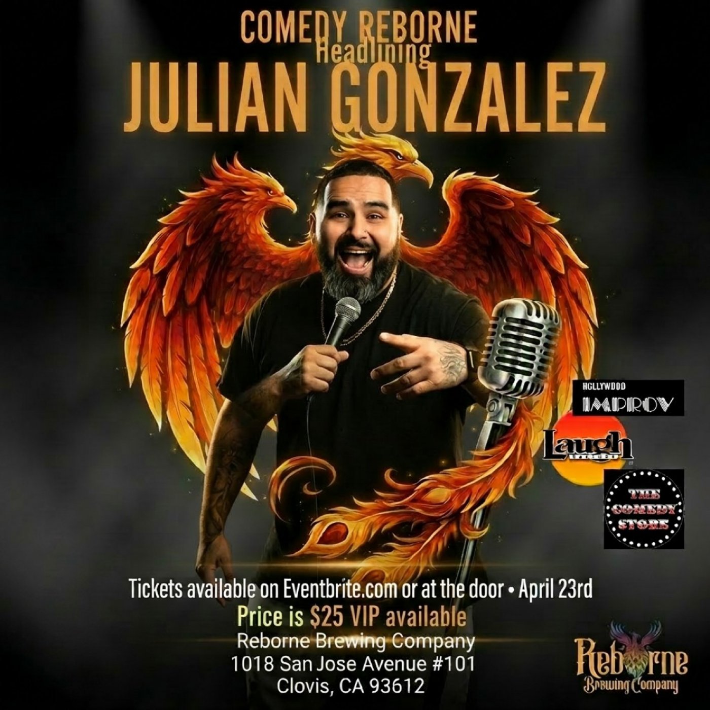 Get ready for a night full of laughs at Reborne Brewing Company! Join us on April 23, 2026 at 7:00 PM (PDT) for an awesome live comedy show featuring the hilarious Julian Gonzalez. Perfect way to kick back, enjoy great brews, and have a blast with friends. Don’t miss out on this fun evening of top-notch comedy and good vibes!