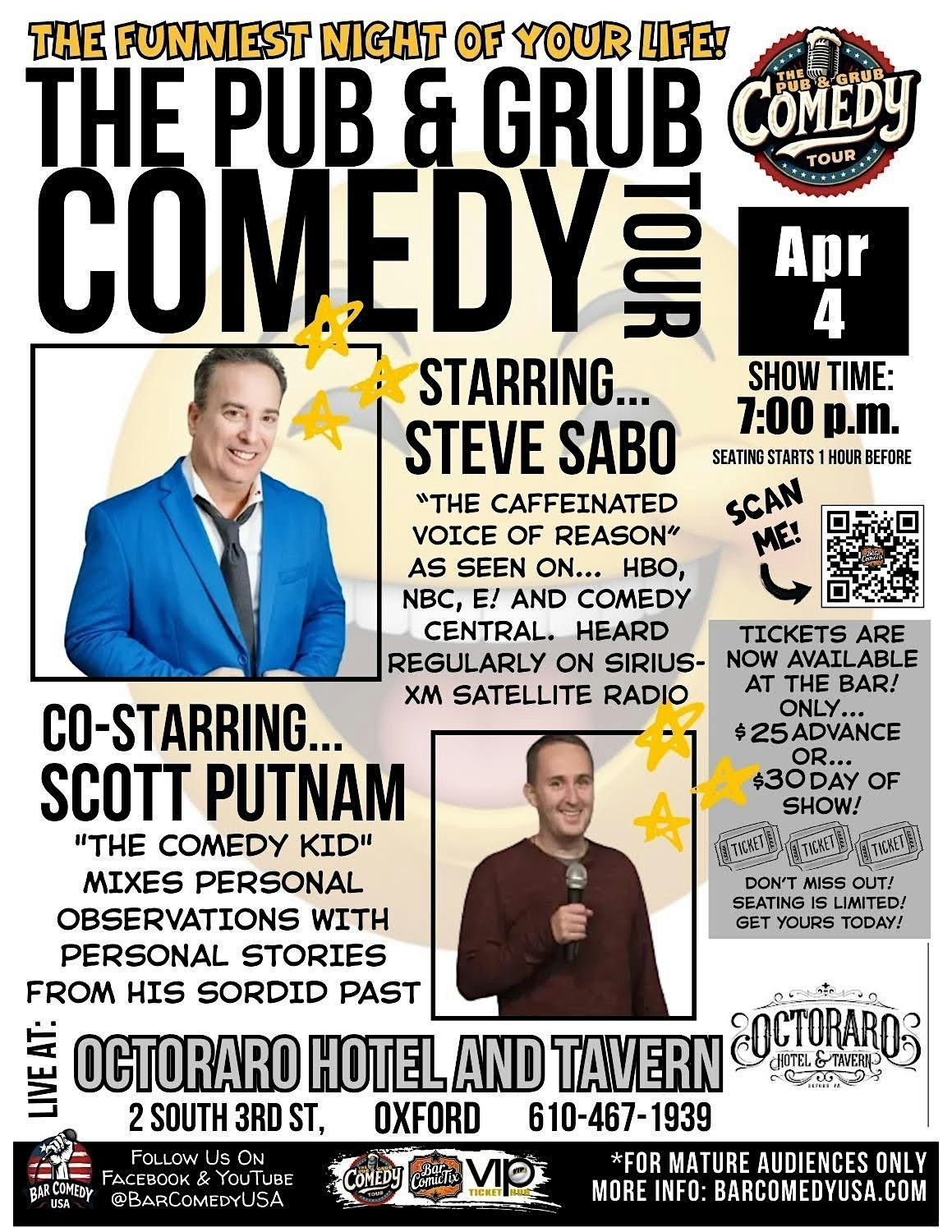 Get ready for a night of nonstop laughs! The Pub & Grub Comedy Tour brings professional, nationally touring comedians to intimate pub venues for an unforgettable comedy experience. Enjoy great food, drinks, and big laughs—all in one night.