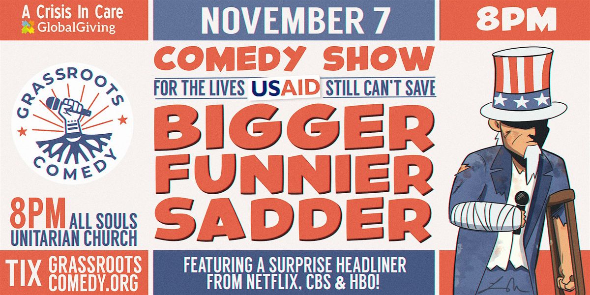 Who says saving lives can’t be hilarious? Join Grassroots Comedy for a night of stand-up that proves you can fight the foreign assistance funding crises and laugh your face off at the same time. This show benefits A Crisis in Care - a rapid-response fundraiser supporting frontline local HIV organizations left stranded by USAID funding cuts- started by former USAID employees.