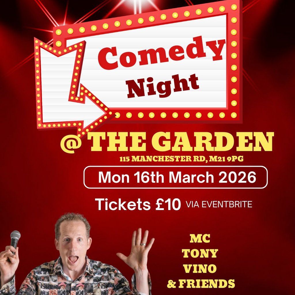 We're back! Chorlton's favourite comedy night at The Garden(formerly The Font): Join Tony Vino and a host of great comedians