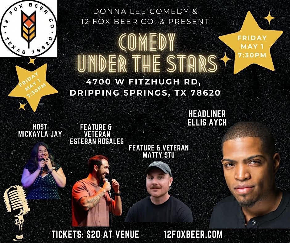 Join us for Comedy Under the Stars at 12 Fox Beer Co., a First Friday stand-up comedy series featuring a rotating lineup of talented comedians, including veteran performers and rising Texas comics.