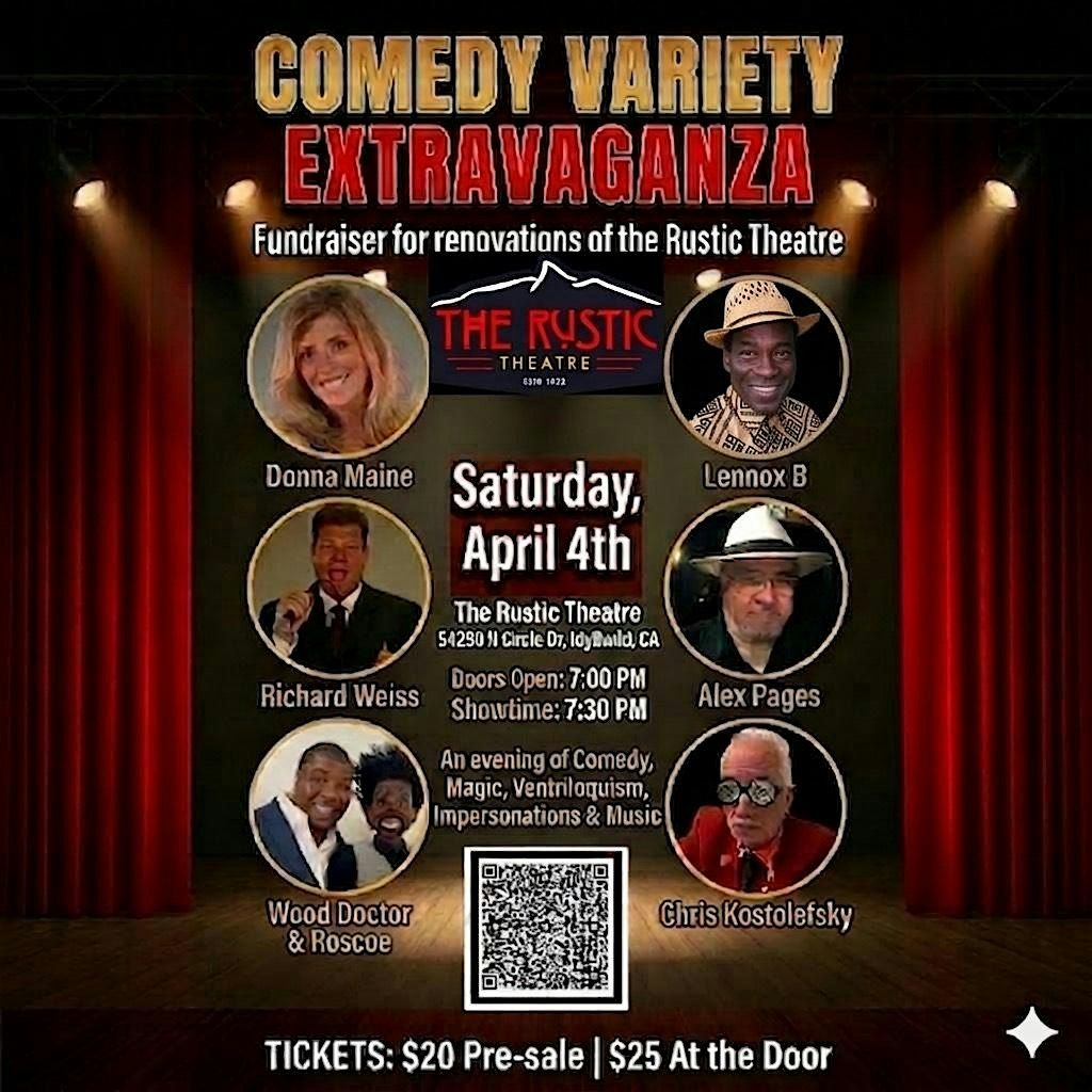 Get ready for a night of nonstop entertainment at the Comedy Variety Extravaganza! Featuring reggae star Lennox B and a diverse lineup of performers, this event brings together comedy, music, magic, ventriloquism, and more—all in one unforgettable show. Enjoy laughs, live performances, and great energy while supporting renovations for The Rustic Theatre.