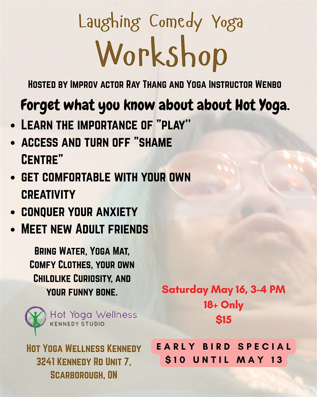 Forget what you know about Hot Yoga. Aren't you curious how our laughter and improv comedy can be incorporated to your Yoga Practice?