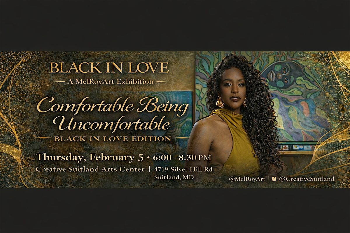Creative Suitland Arts Center proudly presents Comfortable Being Uncomfortable: Black in Love Edition, a featured exhibition by visual artist Melanie Royster (MelRoyArt) as part of our annual Black in Love series.